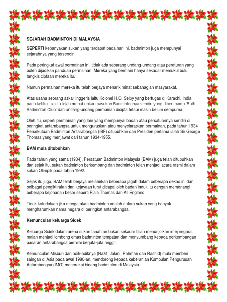 Sejarah Badminton Di Malaysia Pdf